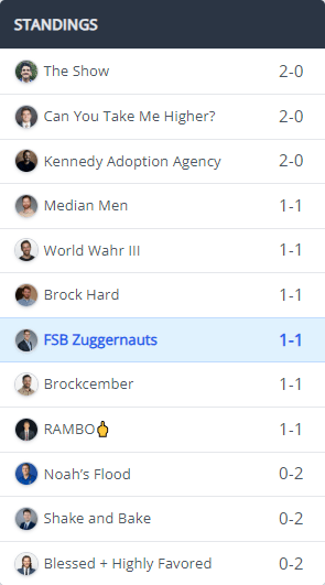 As divisional matchups continued in Week 2, we see early playoff favorites emerging. Lamb’s The Show, Gilmore’s Take Me Higher, and Kennedy’s Adoption Agency have risen to the top. Last season at this time, we assessed team brands. In true tradition, we revisit those brands to see who’s leveled up and who’s lagged behind.