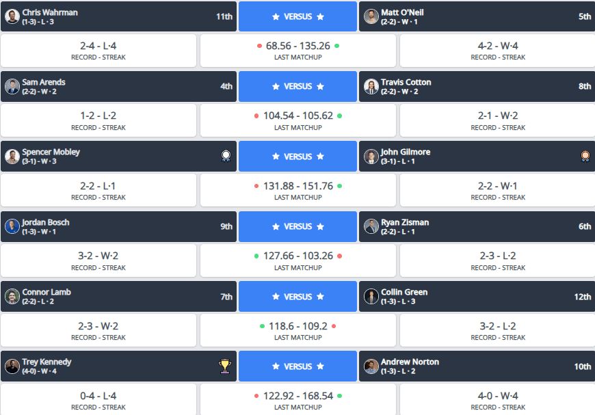 We saw Spencer Mobley win his matchup, perhaps due to the shear will of sacrifice to host during the game.