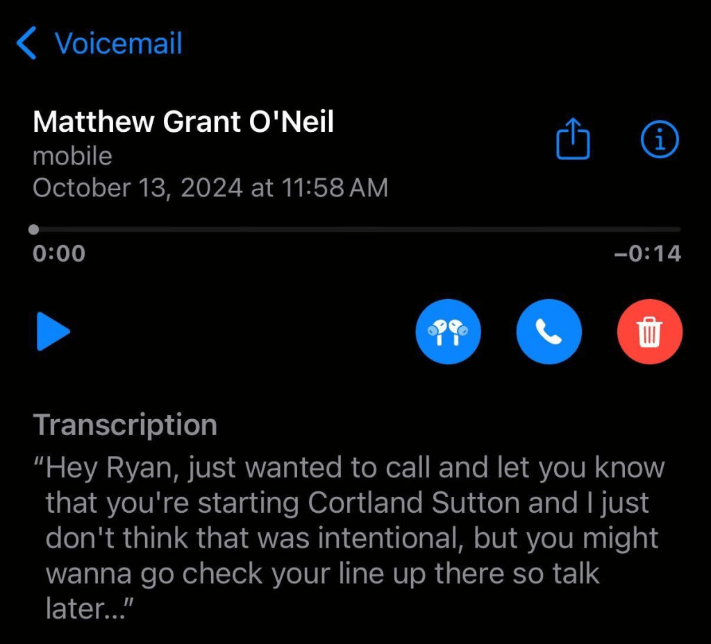 - O’Neil, per football tradition, dissed the league’s commissioner.