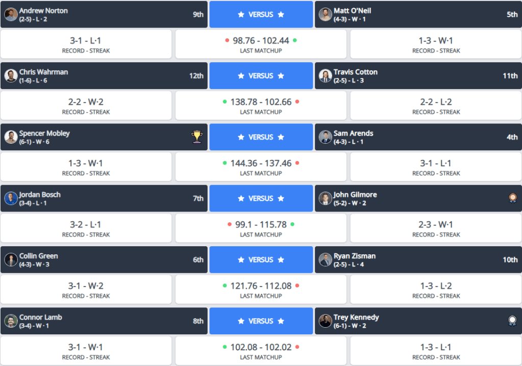 - Trey Kennedy set the record for the lowest score ever in a single matchup with 57.52 points in 2020.