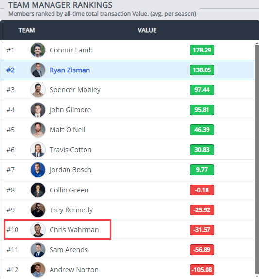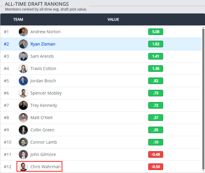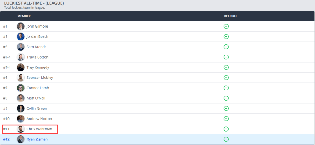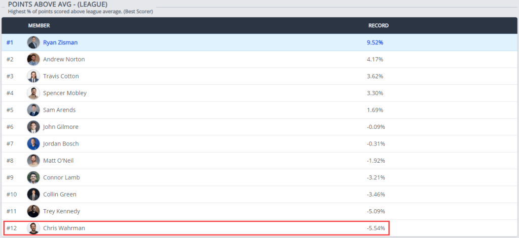 Is Chris Wahrman the unluckiest manager in league history, or is he just bad at fantasy football? This is the question Wahrman finds himself asking. Our publication ran the numbers to bring you the facts. Despite never having had a winning record and despite being the 2021 Toilet Bowl Champ, this publication is here to tell you that he is not bad at fantasy football, he’s simply one of the least lucky franchises in league history: